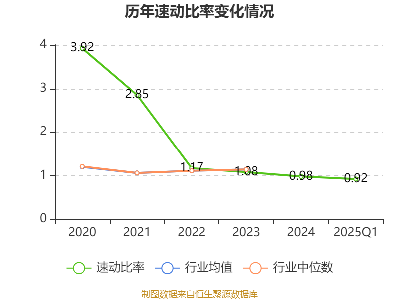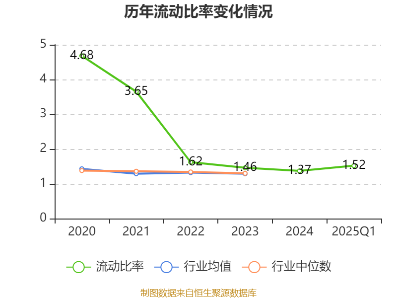 2025年第一季度,公司流动比率为1.52,速动比率为0.92。