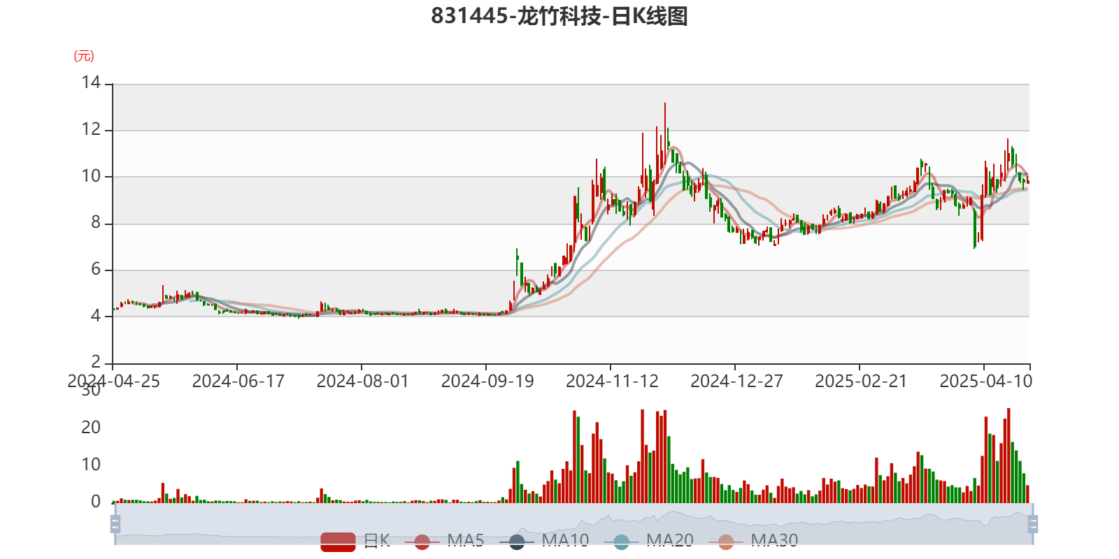 以4月25日收盘价计算,龙竹科技目前市盈率(TTM)约为73.14倍,市净率(LF)约4.14倍,市销率(TTM)约4.17倍。