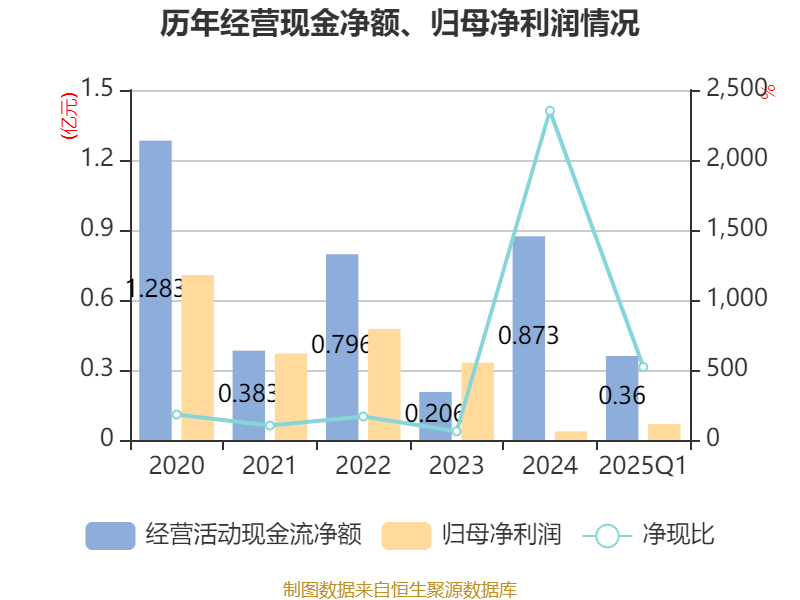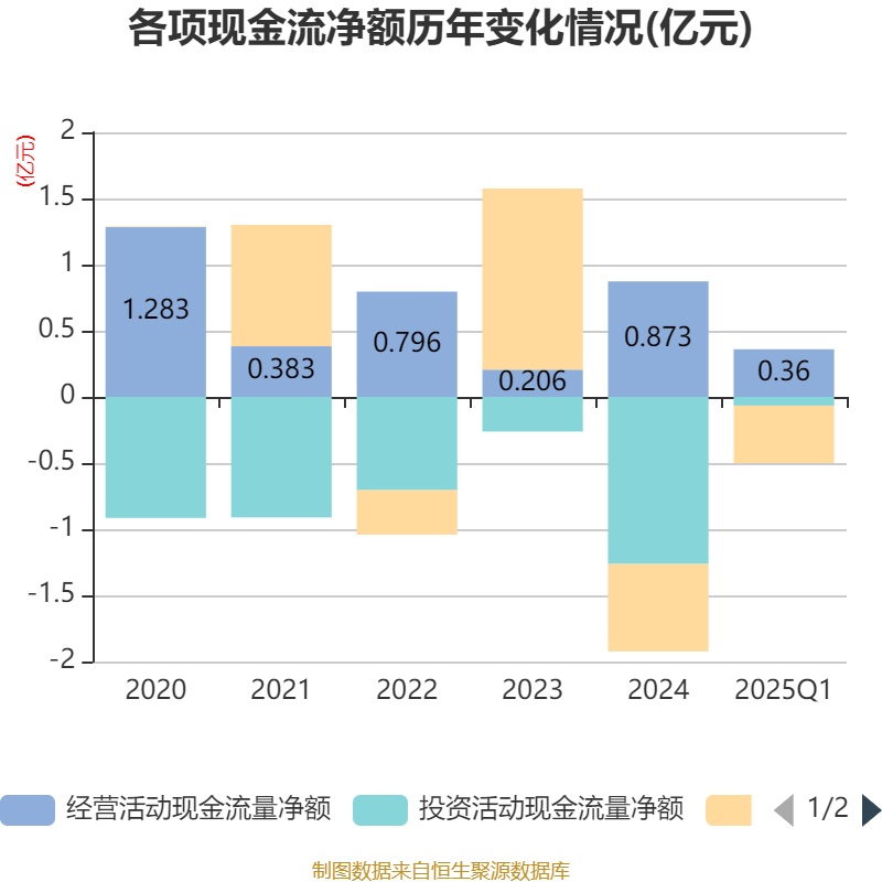 截至2025年一季度末大圣配资,公司经营活动现金流净额为3599.56万元,同比增加6247.56万元;筹资活动现金流净额-4338.07万元,同比减少4145.35万元;投资活动现金流净额-664.14万元,上年同期为-4930.81万元。