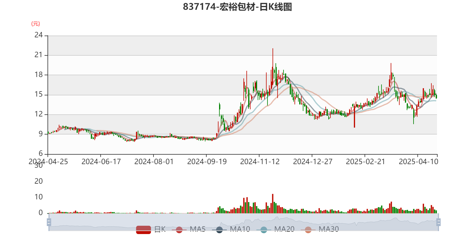 以4月25日收盘价计算,宏裕包材目前市盈率(TTM)约为215.26倍,市净率(LF)约2.42倍,市销率(TTM)约1.83倍。