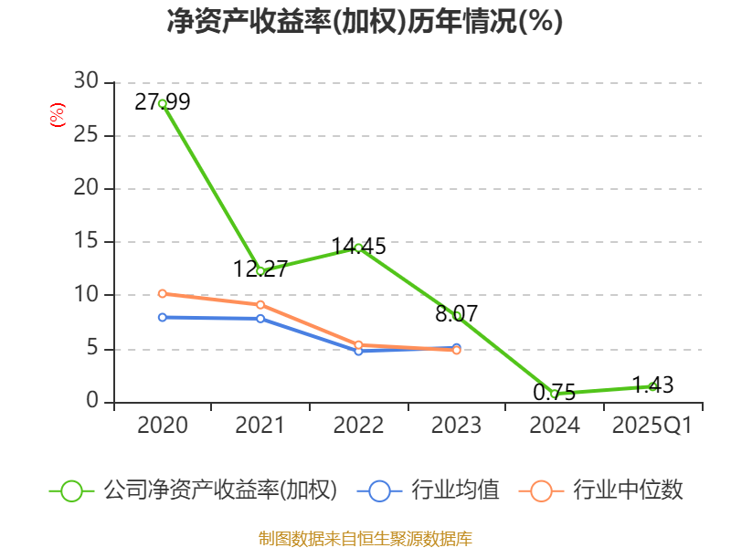 盈利能力方面, 2025年一季度公司加权平均净资产收益率为1.43%,同比上升0.44个百分点。公司2025年第一季度投入资本回报率为1.07%,较上年同期上升0.3个百分点。