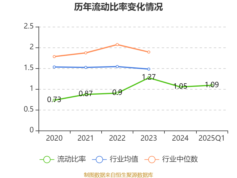 2025年第一季度,公司流动比率为1.09,速动比率为0.71。